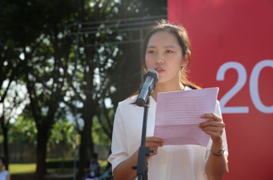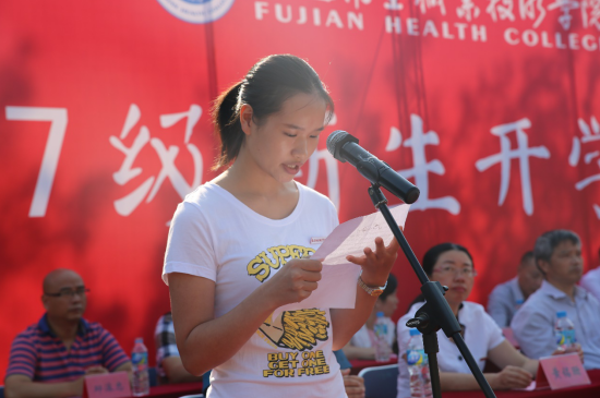 師生代表發(fā)言后,全體新生進行了《醫(yī)學生誓言》的莊嚴宣誓,由輔導(dǎo)員代表鄭冰老師領(lǐng)誓。