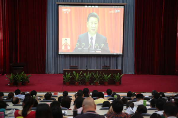 2017年10月18日上午9時,中國共產(chǎn)黨第十九次全國代表大會在北京隆重召開。根據(jù)學(xué)院黨委統(tǒng)一部署,院領(lǐng)導(dǎo)與全體師生黨員近200人在學(xué)術(shù)廳通過電視直播收看十九大開幕會,認(rèn)真聆聽習(xí)近平總書記的報告,并認(rèn)真做摘錄筆記。因公因事未能收看直播的黨員,學(xué)院另行安排收看轉(zhuǎn)播。