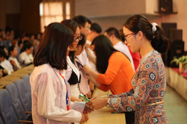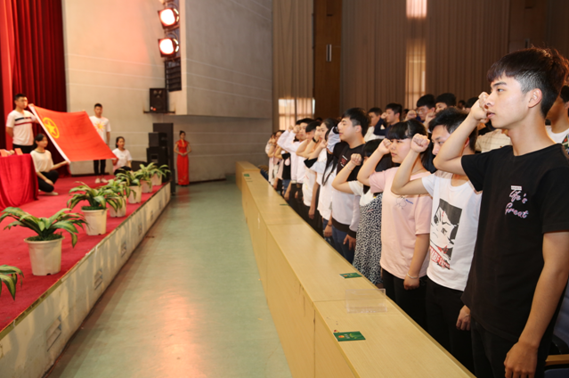 隨后,新團(tuán)員入團(tuán)儀式拉開序幕。在團(tuán)旗下,管理系團(tuán)總支書記邱麟老師帶領(lǐng)全體新團(tuán)員宣誓,老團(tuán)員代表重溫入團(tuán)誓詞。各系團(tuán)總支書記為新團(tuán)員代表佩戴團(tuán)徽、頒發(fā)團(tuán)員證。入團(tuán)介紹人代表林淼鑫宣讀了團(tuán)員的義務(wù)與權(quán)利。新團(tuán)員林曉敏及受表彰學(xué)生代表林明、江艷艷、洪秋萍、郭雅芬、房媛先后上臺發(fā)言,多角度進(jìn)行總結(jié)和交流,充分表達(dá)了發(fā)揚(yáng)“五四”傳統(tǒng),爭做時(shí)代青年先鋒的志向。