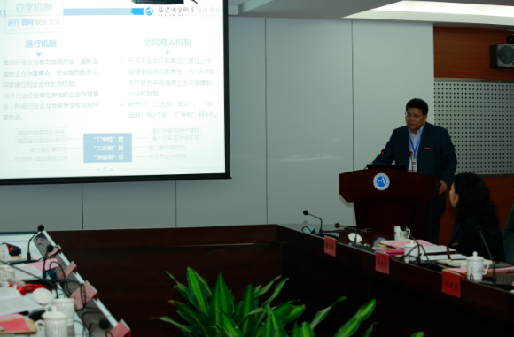 隨后,蘇友新院長(zhǎng)代表學(xué)院從辦學(xué)理念、學(xué)校治理、辦學(xué)機(jī)制、專業(yè)建設(shè)、教學(xué)改革、師資隊(duì)伍、實(shí)訓(xùn)條件、信息化建設(shè)、服務(wù)能力等九個(gè)方面介紹了學(xué)院2016年度福建省示范性現(xiàn)代職業(yè)院校建設(shè)工程項(xiàng)目開(kāi)展情況。蘇友新院長(zhǎng)表示,經(jīng)過(guò)一年建設(shè),學(xué)院各項(xiàng)事業(yè)均取得顯著成效,發(fā)展藍(lán)圖更加清晰,基礎(chǔ)設(shè)施建設(shè)更加扎實(shí),專業(yè)內(nèi)涵水平得到提高,人才培養(yǎng)質(zhì)量得到提升。學(xué)院將進(jìn)一步對(duì)接國(guó)家醫(yī)藥衛(wèi)生和健康戰(zhàn)略,結(jié)合“健康福建”建設(shè),以提高人才培養(yǎng)質(zhì)量為核心,進(jìn)一步規(guī)范辦學(xué)行為,加強(qiáng)校企合作,深化產(chǎn)教融合,打造優(yōu)勢(shì)品牌專業(yè),服務(wù)學(xué)生創(chuàng)新創(chuàng)業(yè),逐漸建成具有醫(yī)藥衛(wèi)生和健康教育辦學(xué)特色的省示范性現(xiàn)代職業(yè)院校。