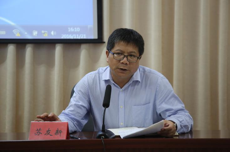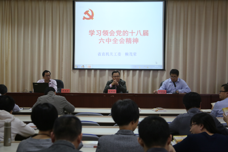 11月21日下午,我院邀請(qǐng)省直機(jī)關(guān)工委講師團(tuán)團(tuán)長(zhǎng)賴茂榮為學(xué)院黨委學(xué)習(xí)中心組、院直機(jī)關(guān)黨員作學(xué)習(xí)領(lǐng)會(huì)黨的十八屆六中全會(huì)精神專(zhuān)題輔導(dǎo)。學(xué)習(xí)會(huì)議由學(xué)院黨委副書(shū)記、院長(zhǎng)蘇友新主持。