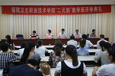 9月13日上午,我院攜手福州海王福藥有限公司和廈門美商醫(yī)藥有限公司隆重舉行福建衛(wèi)生職業(yè)技術(shù)學(xué)院“二元制”教學(xué)班開學(xué)典禮。廈門美商醫(yī)藥有限公司總經(jīng)理楊明江、福州海王福藥有限公司副總經(jīng)理樂基福、學(xué)院院長郭素華教授、學(xué)院副院長廖偉堅副教授、企業(yè)、學(xué)院教師代表以及全體“二元制”學(xué)員出席本次典禮。典禮由藥學(xué)系主任倪峰教授主持。