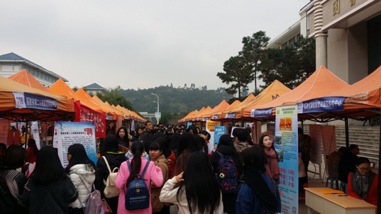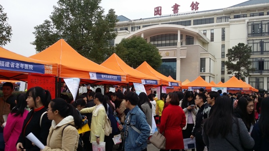 1月9日上午,福建衛(wèi)生職業(yè)技術(shù)學(xué)院2016屆畢業(yè)生供需見面會在校園圖書館前廣場舉行,吸引了全省各地147家醫(yī)藥衛(wèi)生單位參加,提供就業(yè)崗位3000多個。招聘會現(xiàn)場氣氛濃烈,人頭攢動,多家衛(wèi)生醫(yī)療單位、醫(yī)藥企業(yè)擠滿了咨詢的畢業(yè)生,用人單位也根據(jù)需求,閱覽畢業(yè)生簡歷,與畢業(yè)生親切交流、吸引人才。學(xué)院黨委書記林春明、副院長魏立娜親臨招聘會現(xiàn)場,與企業(yè)相關(guān)負(fù)責(zé)人親切交流,了解用人單位需求,各系部黨總支書記和畢業(yè)生輔導(dǎo)員到現(xiàn)場與用人單位接洽溝通,為畢業(yè)生應(yīng)聘提供指導(dǎo)和服務(wù)。福建教育電視臺和海峽都市報對本次招聘會情況進行了報道。