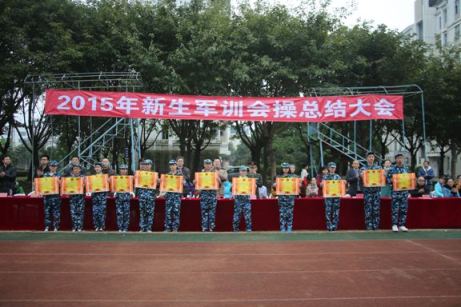 沒有軍訓(xùn)的大學(xué)生活是不完整的,炎炎烈日下,站著軍姿,紋絲不動(dòng)幾十分鐘,半個(gè)月后,一個(gè)個(gè)都成了“包公”,這是傳統(tǒng)的夏季軍訓(xùn)。而我院的2015級(jí)新生們卻在寒假前迎來了第一次的冬季軍訓(xùn),伴著冷風(fēng)、偶有細(xì)雨、依然堅(jiān)持、克服困難、團(tuán)結(jié)協(xié)作、齊步走……為期八天的軍訓(xùn)終于落下帷幕。1月20日上午,學(xué)院在田徑場(chǎng)舉行2015級(jí)學(xué)生軍訓(xùn)會(huì)操總結(jié)大會(huì),黨委書記林春明、副院長(zhǎng)廖偉堅(jiān)、副院長(zhǎng)黃開良、副院長(zhǎng)魏立娜,73919部隊(duì)政委鄒英杰、政治部主任李振東以及學(xué)院有關(guān)處室負(fù)責(zé)人、各系部書記、全體輔導(dǎo)員出席了本次大會(huì)。大會(huì)由魏立娜副院長(zhǎng)主持。 2015年學(xué)院迎來了全國13個(gè)省市2600多名優(yōu)秀學(xué)子,八天軍訓(xùn)中,在部隊(duì)教官和輔導(dǎo)員的共同努力下,同學(xué)們刻苦訓(xùn)練、磨煉毅力、挑戰(zhàn)自我,圓滿完成了軍訓(xùn)任務(wù)。軍訓(xùn)會(huì)操表演同學(xué)們精神飽滿、隊(duì)列整齊,充分展示了大學(xué)生的風(fēng)采。本次軍訓(xùn)共評(píng)選出“軍訓(xùn)精神文明班級(jí)”12個(gè)、“軍訓(xùn)優(yōu)勝班級(jí)”12個(gè)、“內(nèi)務(wù)衛(wèi)生優(yōu)秀宿舍”15個(gè)、“軍訓(xùn)積極分子”259名。 學(xué)院黨委林春明書記在軍訓(xùn)會(huì)操總結(jié)大會(huì)作了講話,他說大學(xué)是人生中一個(gè)美好的階段,也是人生中一個(gè)重要階段,青年大學(xué)生作為實(shí)現(xiàn)中華民族偉大復(fù)興中國夢(mèng)的主力軍和社會(huì)主義事業(yè)的建設(shè)者保衛(wèi)者,自覺關(guān)注世界局勢(shì),學(xué)習(xí)軍事知識(shí),不斷增強(qiáng)國防觀念,強(qiáng)化國家安全意識(shí);牢固樹立“健康第一”的觀念,走下網(wǎng)絡(luò)、走出宿舍、走向操場(chǎng),加強(qiáng)體育鍛煉,提升身體素質(zhì),保持身心健康;把軍訓(xùn)中的優(yōu)良品質(zhì)帶到今后的學(xué)習(xí)生活中,牢固樹立嚴(yán)明的組織紀(jì)律觀念,自覺遵守各項(xiàng)規(guī)章制度,做一個(gè)遵紀(jì)守法的大學(xué)生;繼續(xù)弘揚(yáng)吃苦耐勞的精神,在學(xué)習(xí)工作中不怕苦不怕累,勇挑重?fù)?dān),做一個(gè)有擔(dān)當(dāng)?shù)拇髮W(xué)生。