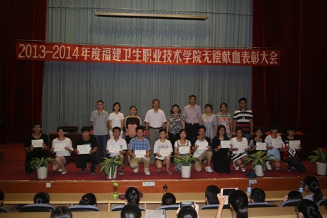 為深化校園文明創(chuàng)建和高校志愿服務(wù),推動(dòng)我院無(wú)償獻(xiàn)血活動(dòng)深入開(kāi)展, 2013-2014年度福建衛(wèi)生職業(yè)技術(shù)學(xué)院無(wú)償獻(xiàn)血表彰大會(huì)于6月18日16:00在學(xué)術(shù)廳舉行。福建省血液中心黨委吳建忠書(shū)記、學(xué)院魏立娜副院長(zhǎng),省血液中心相關(guān)負(fù)責(zé)人,學(xué)院學(xué)工處、團(tuán)委和相關(guān)系部的負(fù)責(zé)人出席了大會(huì)。
