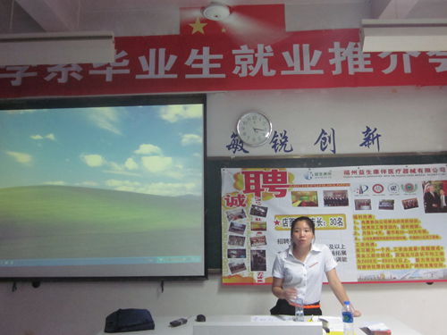 2013年6月26日下午,我院藥學系組織福州益生康伴醫(yī)療器械有限公司為2013屆畢業(yè)生舉行專場招聘會,提供了直營店銷售代表、直營店見習店長、人力資源經(jīng)理等近三十個就業(yè)崗位。