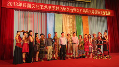 5月10日,本屆校園文化藝術(shù)節(jié)系列活動之臺灣大仁科技大學(xué)服裝走秀表演于學(xué)術(shù)廳舉行,學(xué)院林春明院長、廖偉堅副院長、魏立娜副院長陪同正在我院訪問的九江職業(yè)大學(xué)周興龍副校長、大仁科技大學(xué)國際暨兩岸事務(wù)處馮啟宏副處長等嘉賓,一同觀看了表演。