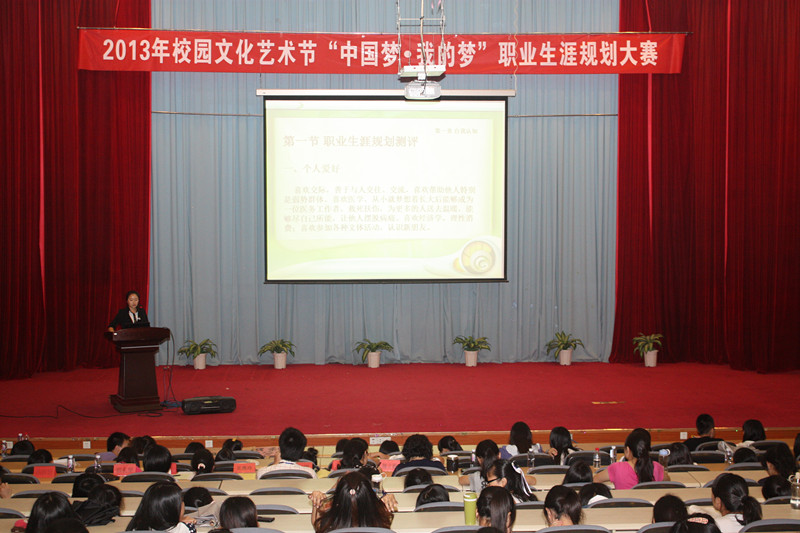 為了在全體學(xué)生中進(jìn)一步宣傳“中國夢”主題教育活動,增進(jìn)在校學(xué)生對職業(yè)和就業(yè)的認(rèn)識,5月28日我院在學(xué)術(shù)廳舉辦了“2013年校園文化藝術(shù)節(jié)‘中國夢·我的夢’職業(yè)生涯規(guī)劃大賽”。學(xué)院魏立娜副院長以及學(xué)生工作處、思政教研部、院團(tuán)委和相關(guān)系部領(lǐng)導(dǎo)出席,各系輔導(dǎo)員和400余名學(xué)生共同觀看了比賽。
