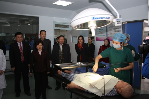 12月10日下午,中共福建省委常委、省人民政府副省長(zhǎng)、省委教育工委書記陳樺率省直有關(guān)部門及閩侯縣政府領(lǐng)導(dǎo)來(lái)我院調(diào)研衛(wèi)生人才培養(yǎng)情況,調(diào)研省里最近先后出臺(tái)的《福建省人民政府關(guān)于進(jìn)一步支持高校加快發(fā)展的若干意見》和《福建省人民政府辦公廳關(guān)于支持高職院校改革發(fā)展的若干意見》文件精神的落實(shí)情況。 陳樺副省長(zhǎng)一行實(shí)地考察了學(xué)院圖書館、護(hù)理系及藥學(xué)系,深入手術(shù)室、ICU、兒科護(hù)理實(shí)訓(xùn)室等以及藥物制劑實(shí)訓(xùn)車間,與學(xué)生親切交談,對(duì)學(xué)院的專業(yè)建設(shè)、人才培養(yǎng)、校園文化建設(shè)、校企合作等情況做了詳細(xì)的了解,對(duì)學(xué)院建設(shè),尤其是對(duì)學(xué)院文化廣場(chǎng)、實(shí)訓(xùn)中心等校園文化建設(shè)、實(shí)訓(xùn)設(shè)施建設(shè)給予了高度評(píng)價(jià)和肯定。 在隨后舉行的匯報(bào)會(huì)上,陳樺副省長(zhǎng)在聽取了學(xué)院林春明院長(zhǎng)作的題為《優(yōu)化結(jié)構(gòu)提高質(zhì)量,校企合作辦出特色》的工作匯報(bào)后,對(duì)學(xué)院工作提出五個(gè)方面要求:一是明確定位,二是加快發(fā)展,三是提升質(zhì)量,四是加強(qiáng)管理,五是塑造文化。陳樺副省長(zhǎng)還要求學(xué)院加大改革創(chuàng)新力度,加強(qiáng)班子建設(shè),走在示范院校的前列,做引領(lǐng)示范,朝著全國(guó)示范性高職院校方向努力,爭(zhēng)創(chuàng)一流。同時(shí),對(duì)學(xué)院提出的幾個(gè)亟待支持解決的問(wèn)題給予明確的回答和幫助。 風(fēng)華百年弦歌壯,桃李八閩丹心長(zhǎng)。省領(lǐng)導(dǎo)的關(guān)懷,讓學(xué)院師生醫(yī)護(hù)員工深受感動(dòng)、備受鼓舞,大家紛紛表示決不辜負(fù)上級(jí)領(lǐng)導(dǎo)對(duì)我們的殷切期望,把領(lǐng)導(dǎo)的關(guān)懷化為工作的動(dòng)力,扎實(shí)工作,奮發(fā)進(jìn)取,為建設(shè)省內(nèi)領(lǐng)先、國(guó)內(nèi)一流示范性高職院校作出我們應(yīng)有的貢獻(xiàn)。