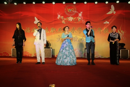 12月8日,在鮮花簇?fù)硐?,在彩旗飄揚(yáng)中,在歡聲笑語(yǔ)里,社會(huì)各界嘉賓和海內(nèi)外校友相聚到荊溪畔美麗的校區(qū)內(nèi),與全校5000余名師生共同慶祝福建衛(wèi)生職業(yè)技術(shù)學(xué)院100周年華誕。下午6點(diǎn)30分在音樂廣場(chǎng)隆重舉行我院百年校慶文藝晚會(huì)。福建省衛(wèi)生廳余健盛副巡視員、學(xué)院林春明院長(zhǎng)、院黨委陳雄副書記、黃開良副院長(zhǎng)、魏立娜副院長(zhǎng)和各附屬醫(yī)院的領(lǐng)導(dǎo)老師以及學(xué)院全體師生齊聚明湖之畔,觀看晚會(huì)。