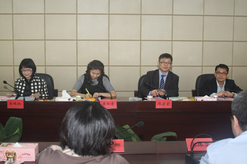 2012年10月25日上午,臺灣大仁科技大學(xué)國際暨兩岸事務(wù)處馮啟宏副處長及該校藥學(xué)系主任謝博銓教授、時(shí)尚美容應(yīng)用系主任廖郁雯博士和郭瑞淑教授一行四人來我院參觀訪問。林春明院長親切會見了來訪客人,對他們的到來表示熱烈歡迎。隨后,我院廖偉堅(jiān)副院長、魏立娜副院長及護(hù)理系、藥學(xué)系等部門負(fù)責(zé)人與臺灣大仁科技大學(xué)代表在行政樓第一會議室進(jìn)行了友好會談。