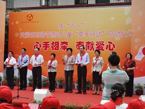 2012年5月25日,我院婦委會(huì)主任馬少寧老師和愛心媽媽代表曾婷婷老師參加了慶“六一”關(guān)愛農(nóng)村留守流動(dòng)兒童“牽手行動(dòng)”啟動(dòng)儀式,該活動(dòng)在福州市晉安區(qū)站北小學(xué)舉行,由省婦聯(lián)舉辦。省委常委、副省長陳樺,省人大常委會(huì)副主任李紅出席啟動(dòng)儀式。