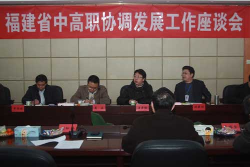 2012年2月17日,福建省中高職協(xié)調(diào)發(fā)展工作座談會在我院召開。教育廳高教處調(diào)研工作組,我院林春明院長、廖偉堅副院長、魏立娜副院長、教務(wù)處和學(xué)工處等有關(guān)負責(zé)人,閩江學(xué)院成人教育學(xué)院、黎明職業(yè)大學(xué)、福建商業(yè)高等專科學(xué)校、漳州職業(yè)技術(shù)學(xué)院、福建信息職業(yè)技術(shù)學(xué)院、福州職業(yè)技術(shù)等六所高職學(xué)校的領(lǐng)導(dǎo)及有關(guān)負責(zé)人出席了此次座談會。會議由林春明院長主持。