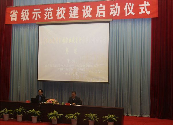 啟動(dòng)儀式邀請(qǐng)了教育部高等教育評(píng)估專家、遼寧工程學(xué)院教育發(fā)展研究中心于雷教授作題為《高等職業(yè)教育引領(lǐng)職業(yè)教育科學(xué)發(fā)展行動(dòng)計(jì)劃解讀》的主題報(bào)告。于教授從三大發(fā)展背景、五項(xiàng)基本原則、五大發(fā)展目標(biāo)、十大行動(dòng)計(jì)劃、五項(xiàng)保障措施等五個(gè)方面對(duì)高等職業(yè)教育引領(lǐng)職業(yè)教育科學(xué)發(fā)展行動(dòng)計(jì)劃進(jìn)行了仔細(xì)解讀。于教授的主題報(bào)告準(zhǔn)確把握我國(guó)現(xiàn)代高職教育發(fā)展形勢(shì),為我校開展省級(jí)示范性高職院校建設(shè),進(jìn)一步提升辦學(xué)水平和人才培養(yǎng)質(zhì)量指明了方向,也標(biāo)志著學(xué)院省級(jí)示范性高職院校建設(shè)正式啟動(dòng)。