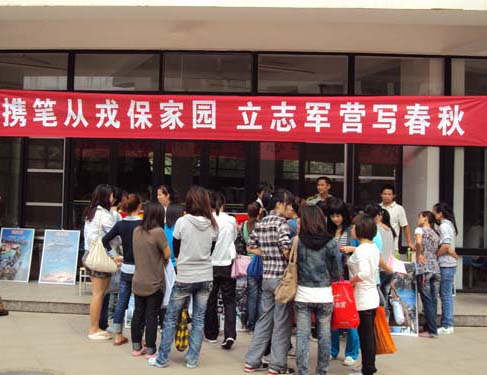 為了響應(yīng)信息化軍隊(duì)的建設(shè),吸引高素質(zhì)人才入伍,我院于2011年10月14日配合閩侯縣征兵辦公室舉辦“攜筆從戎保衛(wèi)國(guó)家,立志從軍寫春秋”的征兵宣傳活動(dòng)。