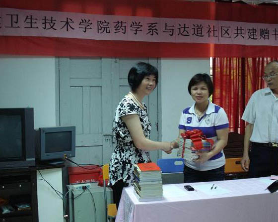 7月9日,藥學(xué)系與臺江區(qū)洋中街道達(dá)道社區(qū)舉行“愛心書屋”捐贈儀式,捐贈圖書900多冊及書款600多元,福州新聞網(wǎng)等媒體到現(xiàn)場進(jìn)行報道;護(hù)理系深入臺江區(qū)洋中街道玉樹社區(qū),開展血壓測量、六步洗手法教授、夏季多發(fā)病防治宣傳、營養(yǎng)健康咨詢等活動,并進(jìn)行護(hù)士禮儀表演;臨床醫(yī)學(xué)系到臺江區(qū)洋中街道鋪前社區(qū),向社區(qū)居民介紹了義診活動的內(nèi)容,包括測血壓、測血型、色盲檢查、健康知識普及、問卷調(diào)查等活動,獲得了廣大居民的一致好評。