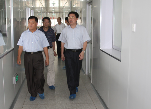 曹德淦主任(左一)參觀我院藥物制劑實(shí)訓(xùn)車間