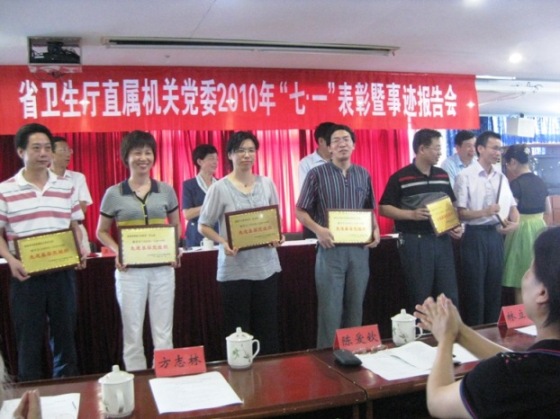 6月30日下午,省衛(wèi)生廳直屬機(jī)關(guān)黨委召開(kāi)慶祝中國(guó)共產(chǎn)黨成立89周年“七一”表彰大會(huì)暨“創(chuàng)先爭(zhēng)優(yōu)”活動(dòng)事跡報(bào)告會(huì)。廳直機(jī)關(guān)黨委書(shū)記張守臣等領(lǐng)導(dǎo)出席會(huì)議并做重要講話。會(huì)議表彰了近2年來(lái)廳直屬單位和廳機(jī)關(guān)在深入開(kāi)展學(xué)習(xí)實(shí)踐科學(xué)發(fā)展觀活動(dòng)和深入開(kāi)展“創(chuàng)先爭(zhēng)優(yōu)”活動(dòng)中涌現(xiàn)出來(lái)的一批先進(jìn)基層黨組織、優(yōu)秀共產(chǎn)黨員和優(yōu)秀黨務(wù)工作者,我院院直機(jī)關(guān)黨總支獲先進(jìn)黨總支、醫(yī)學(xué)技術(shù)系第二黨支部獲先進(jìn)黨支部、董榕同志獲優(yōu)秀黨務(wù)工作者、林崧、郭禮堅(jiān)、朱扶蓉和林浩等4位同志獲優(yōu)秀共產(chǎn)黨員等榮譽(yù)稱號(hào)。
