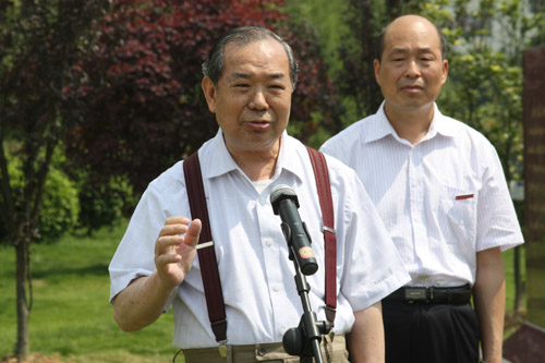 潘明繼教授(中)與其夫人施增英女士(右三)和院領(lǐng)導(dǎo)合影