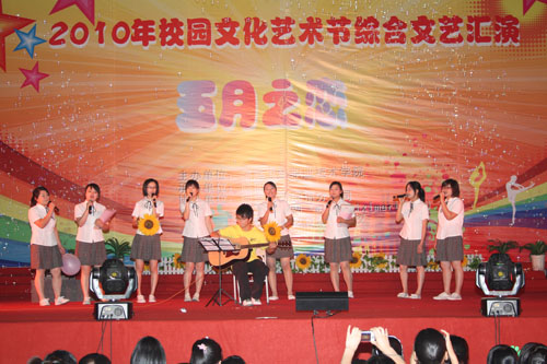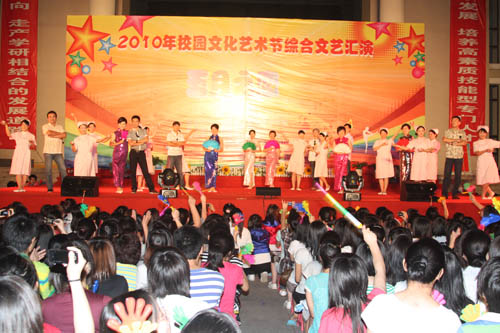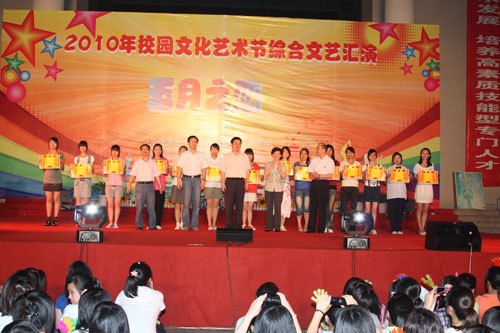 5月25日, 我院在圖書館前隆重舉行“2010年校園文化藝術(shù)節(jié)暨五月之戀”大型綜合文藝晚會(huì)。院黨委書記嚴(yán)肅、院長(zhǎng)林春明、黨委副書記陳雄、副院長(zhǎng)廖偉堅(jiān)、黃開良、魏立娜及相關(guān)部門負(fù)責(zé)人出席晚會(huì),與同學(xué)們一起觀看了演出。