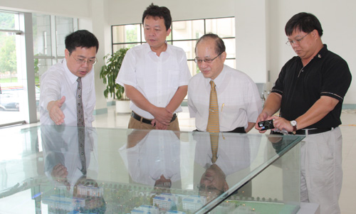 林春明院長(左一)向臺灣客人介紹學院規(guī)劃