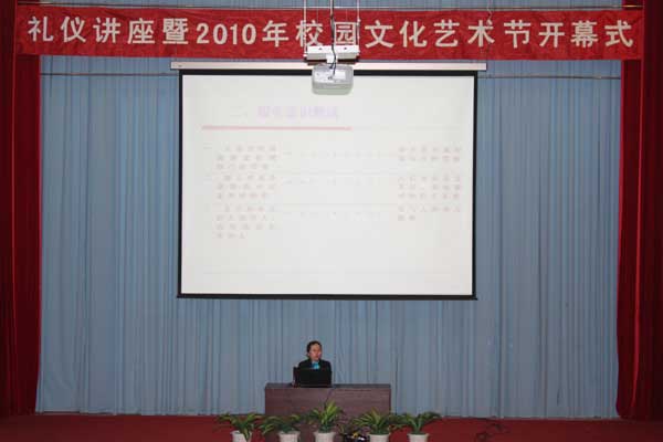4月14日晚,我院在學(xué)術(shù)廳報告廳舉行禮儀講座暨2010年校園文化藝術(shù)節(jié)開幕式。開幕式由院團委邱滾忠副書記主持,魏立娜副院長、學(xué)工處黃銘珊副處長、全體輔導(dǎo)員和各系學(xué)生400多人參加了開幕式。魏立娜副院長為2010年校園文化藝術(shù)節(jié)的開幕做了重要講話。