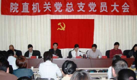 院直機(jī)關(guān)黨總支換屆選舉大會現(xiàn)場 楊誠同志主持大會
