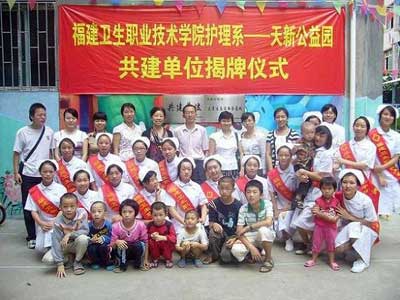 2009年9月30日下午,護(hù)理系第一黨支部部分教師黨員、學(xué)生黨員、入黨積極分子在支部書記龔海蓉老師的帶領(lǐng)下來到聽障兒童康復(fù)訓(xùn)練機(jī)構(gòu)——天新公益園舉辦“共建單位”揭牌儀式。謝濤書記與天新公益園冉枝瑜校長簽訂共建協(xié)議,雙方建立公益事業(yè)戰(zhàn)略協(xié)作伙伴關(guān)系。護(hù)理系第一黨支部將對(duì)天新公益園實(shí)施長期共建幫扶并把天新公益園作為護(hù)理系大學(xué)生志愿者服務(wù)基地。揭牌儀式之后,大家同孩子們一起玩游戲,吃月餅,教他們寫字、畫畫,給這些殘疾的孩子們送去溫暖和關(guān)懷。10月1日的東南快報(bào)A22版對(duì)此事進(jìn)行了跟蹤報(bào)到。(護(hù)理系)