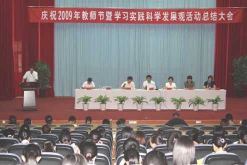 大會宣讀了榮獲上級表彰的教職工先進(jìn)集體和個人名單,對2008~2009學(xué)年教職工先進(jìn)集體和個人以及獲教學(xué)名師獎和優(yōu)秀教學(xué)獎的教師進(jìn)行了表彰,領(lǐng)導(dǎo)還為從事教育工作男滿30周年、女滿23周年教職工頒獎,