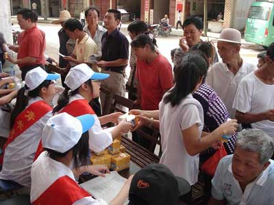 為了貫徹和實施團中央有關大學生“三下鄉(xiāng)”活動的精神,我系于7月4日至7月6日前往福州市閩侯縣洋里鄉(xiāng)開展以“真情送服務,實踐促成長”為主題的“三下鄉(xiāng)”活動。本次活動得到閩侯縣團委、洋里鄉(xiāng)政府的支持和指導,并得到福州海王福藥制藥有限公司、福建省東南醫(yī)藥有限公司友情贊助?!叭锣l(xiāng)”服務隊由何烜、唐小巒和鄭瑋老師和10名團干部組成。本次“三下鄉(xiāng)”活動閩侯縣電視臺全程跟蹤報道。