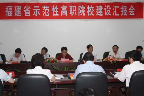 林春明院長代表學院做了示范性院校建設工作匯報。匯報從學院的建設基礎、建設目標和內容、保障措施三個方面進行陳述,列舉了學院創(chuàng)建示范校的基礎和優(yōu)勢,提出了把握總目標、抓好“三大建設”、落實“八項內容”的建設目標和思路,表示有信心在省委、省政府的領導下,在上級領導部門的關心和支持下,通過積極扎實的努力,全面完成示范校建設目標,為福建省高等職業(yè)教育發(fā)展、為海峽西岸經濟區(qū)建設作出新的貢獻?! ?/DIV>