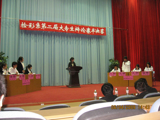 檢驗影像系于4月7日下午在學(xué)術(shù)廳舉行第二屆大專生辯論賽的兩場半決賽。擔(dān)任此次比賽的評委是:莊海林老師、李淼淼老師、宋楓老師、傅衍達老師和郭永慶老師。本次比賽采用國際大專生辯論賽賽制,增設(shè)了攻辯階段,使整場比賽更具看點。