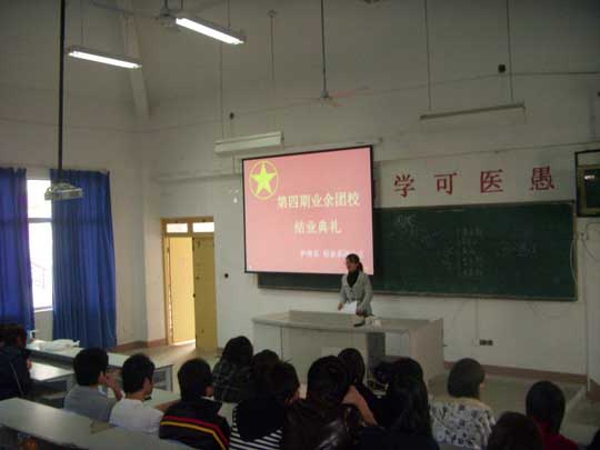 2009年3月9日下午,護(hù)理系、檢影系第四期業(yè)余團(tuán)校結(jié)業(yè)典禮在檢影系第二階梯教室隆重舉行。護(hù)理系團(tuán)總支書記鐘奇志老師、檢影系團(tuán)總支書記周薇琳以及全體培訓(xùn)班學(xué)員出席了典禮。結(jié)業(yè)典禮由護(hù)理系副團(tuán)總支書記林燕主持。本期業(yè)余團(tuán)校護(hù)理系共有99名學(xué)員,經(jīng)過考核,有85名學(xué)員順利結(jié)業(yè)。通過學(xué)習(xí)團(tuán)的歷史、團(tuán)的發(fā)展歷程和團(tuán)員的基本利益等,使學(xué)員們更加明確了入團(tuán)動機(jī),對共青團(tuán)的基本任務(wù)和奮斗目標(biāo)有了進(jìn)一步的認(rèn)識,在今后的學(xué)習(xí)生活中,要時刻以團(tuán)員的標(biāo)準(zhǔn)嚴(yán)格要求自己,吃苦在前,享受在后,在建設(shè)有中國特色社會主義的偉大實(shí)踐中,努力把自己造就成為“四有新人”。最后,護(hù)理系團(tuán)總支書記鐘奇志老師總結(jié)了本期業(yè)余團(tuán)校各方面的情況并對同學(xué)們圓滿結(jié)業(yè)表示了肯定和祝賀,同時對學(xué)員提出了新的希望和要求。