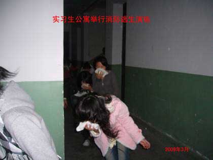根據(jù)教育廳學(xué)校安全辦公室頒發(fā)的《關(guān)于認(rèn)真做好春季開學(xué)初學(xué)校安全工作的通知》和轉(zhuǎn)發(fā)福建省人民政府安全生產(chǎn)委員會(huì)辦公室《關(guān)于認(rèn)真汲取近期火災(zāi)事故教訓(xùn)進(jìn)一步加強(qiáng)冬季防火工作的通知》以及國(guó)務(wù)院安全生產(chǎn)委員會(huì)辦公室的文件精神。在學(xué)院領(lǐng)導(dǎo)高度重視下,2009年3月3日與10日由保衛(wèi)處牽頭,在輔導(dǎo)員和公寓管理員的協(xié)助下,組織西洪、麥園兩處實(shí)習(xí)生住宿點(diǎn)舉行兩場(chǎng)消防逃生演練和滅火器使用現(xiàn)場(chǎng)講解活動(dòng)。逃生演練過程以實(shí)戰(zhàn)出發(fā),模擬白天和夜間(斷電)情況下發(fā)生火災(zāi),學(xué)生如何按照指定線路快速逃生,并強(qiáng)調(diào)逃生時(shí)一定切記攜帶濕毛巾用其捂住嘴巴并彎腰跑步快速離開火場(chǎng),確保安全;同時(shí)還現(xiàn)場(chǎng)詳細(xì)講解滅火器的使用方法和逃生演練過程存在問題及注意事項(xiàng)。共有300多人參加演練。通過模擬演練提高了學(xué)生的自我保護(hù)和安全防范意識(shí),達(dá)到了預(yù)期的目的。