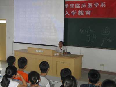 學(xué)校的規(guī)章制度是校園安全的重要保障。9月3日下午,臨床醫(yī)學(xué)系黨總支書記蘇愛華向2008級臨床醫(yī)學(xué)專業(yè)全體新同學(xué)進(jìn)行了入學(xué)教育。會上,蘇書記重點介紹了我校學(xué)生請假制度以及安全保衛(wèi)方面的相關(guān)規(guī)定,他用生動的語言、鮮活的案例,采用多媒體課件為同學(xué)們介紹了當(dāng)前學(xué)校和學(xué)院周邊的治安狀況,對發(fā)生在學(xué)生中的一典型案例進(jìn)行了分析,介紹了一些大學(xué)生應(yīng)加強(qiáng)防范的方法。他關(guān)切地叮囑同學(xué)們,如果遇到困難可以向輔導(dǎo)員、兼職班主任或?qū)W校有關(guān)部門求助,老師們一定會竭盡全力幫助大家。蘇愛華書記的關(guān)心與囑咐讓新同學(xué)感受到臨床醫(yī)學(xué)系這個大家庭的溫馨與親切。