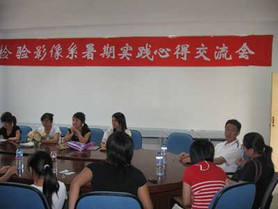 9月11日下午4點,檢驗影像系在系部三樓會議室舉行了暑期社會實踐心得交流會。出席本次交流會的有:馬少寧主任、洪聿榮書記、周微琳老師、黃小芳老師以及各班同學(xué)代表。會議氣氛融洽,同學(xué)們各抒己見,暢談在實踐中的所見所聞和所感。