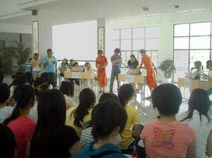 為了豐富同學(xué)們的課余生活,增加同學(xué)們讀書求知的興趣,我院于2008年6日10日在圖書館一樓大廳,舉辦福建衛(wèi)生職業(yè)技術(shù)學(xué)院第十五屆讀書節(jié)。本次活動由院讀者協(xié)會主辦,學(xué)院社團部協(xié)辦。本次活動有知識問答、猜謎、開心對對碰等比賽項目,選手由各系派代表組成,徐向前、劉哲、陳佳蕾等主持人出色的完成了活動的主持工作,整個活動過程,場下觀眾熱情度高漲、積極響應(yīng),在會長黃曉梅的精心策劃和組織下,本次活動圓滿成功,最后根據(jù)評分細則,檢驗影像系獲得一等獎、護理系獲得二等獎、藥學(xué)系獲得三等獎。(院讀者協(xié)會)
