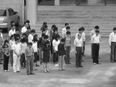 第三,5月19日下午14時28分起,校園防空警報鳴響,全體師生默哀3分鐘。教學(xué)樓或?qū)嶒炇疑险n師生就地起立默哀3分鐘,行政樓各處室人員在行政樓與教學(xué)樓間廣場集中默哀,系館、圖書館等教職工集中本樓層走廊默哀3分鐘。