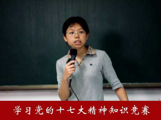 通過競(jìng)賽讓同學(xué)們對(duì)黨的十七大精神及新黨章有了更深刻的認(rèn)識(shí)。此次知識(shí)競(jìng)賽活動(dòng)的順利進(jìn)行,是對(duì)我系學(xué)生一次黨的基本知識(shí)教育,更是對(duì)全系學(xué)生學(xué)習(xí)十七大精神的一次鞭策和鼓舞。(藥學(xué)系)