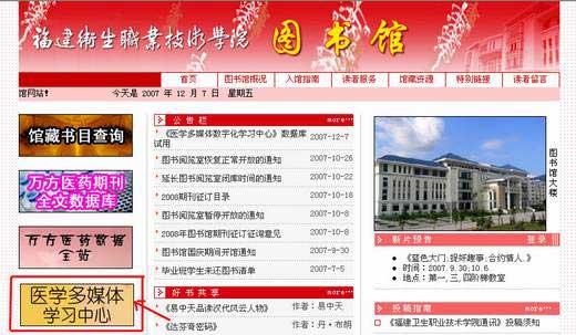 我院圖書館現(xiàn)已開通《醫(yī)學(xué)多媒體數(shù)字化學(xué)習(xí)中心》數(shù)據(jù)庫(試用期兩個(gè)月),歡迎廣大讀者使用。《醫(yī)學(xué)多媒體數(shù)字化學(xué)習(xí)中心》是一個(gè)集各種專業(yè)醫(yī)學(xué)視頻、聲頻、圖譜、動(dòng)畫和課件的多媒體學(xué)習(xí)平臺(tái),可為我校廣大師生教與學(xué)提供豐富、生動(dòng)的非書資源。該數(shù)據(jù)庫含醫(yī)學(xué)視頻5600多個(gè)、醫(yī)學(xué)動(dòng)畫1800多個(gè)、醫(yī)學(xué)課件11000多個(gè)、醫(yī)學(xué)聲頻700多個(gè)、醫(yī)學(xué)圖片30000多幅,此外還有200余冊(cè)電子教材、20000余條衛(wèi)生法律法規(guī)等。