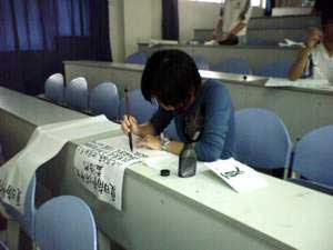 為豐富同學(xué)們的課余活動(dòng),提高對(duì)中國(guó)書(shū)法的鑒賞能力,同時(shí)發(fā)掘系部書(shū)法方面的優(yōu)秀人才,檢驗(yàn)影像系于2007年10月11日下午4:00在系二階教室舉行書(shū)法比賽。本次比賽共收到參賽作品50余件,其參賽作品之多,書(shū)法技藝之高超,令評(píng)委驚喜。經(jīng)過(guò)評(píng)委的認(rèn)真評(píng)選,最終評(píng)出一等獎(jiǎng)2名,二等獎(jiǎng)4名,三等獎(jiǎng)6名,優(yōu)秀獎(jiǎng)8名,所有的獲獎(jiǎng)?wù)叨紝@得相應(yīng)的素質(zhì)拓展加分。(檢驗(yàn)影像系)