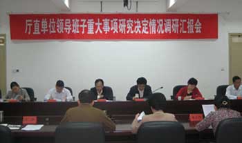 11月1日省衛(wèi)生廳一行6人在張守臣副廳長(zhǎng)的帶領(lǐng)下到我院調(diào)研領(lǐng)導(dǎo)班子重大事項(xiàng)研究決定情況,我院領(lǐng)導(dǎo)班子全體成員及部分中層干部參加了調(diào)研會(huì)。調(diào)研組通過(guò)問(wèn)聽(tīng)匯報(bào)會(huì)、問(wèn)卷調(diào)查、個(gè)別訪談、查看資料等形式對(duì)我院領(lǐng)導(dǎo)班子執(zhí)行重大事項(xiàng)集體研究決定進(jìn)行了深入調(diào)研。(黨辦 董海燕)