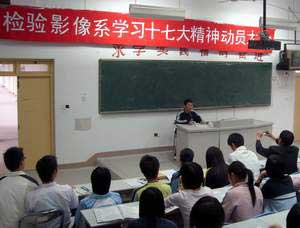 為了深入學(xué)習(xí)并貫徹“十七大”精神,檢驗(yàn)影像系于2007年11月6日下午在系部階梯教室舉行了“學(xué)習(xí)十七大精神”的動(dòng)員大會(huì)。會(huì)議由林宇同學(xué)主持;各班團(tuán)支部干部、學(xué)生會(huì)干部、學(xué)生預(yù)備黨員、入黨積極分子等參加會(huì)議。