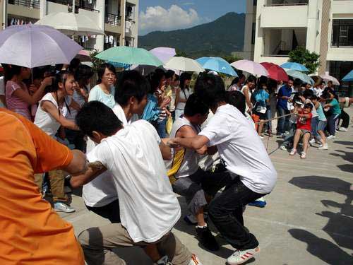 13:30,全系學(xué)生集合完畢,歐書記作重要講話:為加強(qiáng)系部各班級同學(xué)之間的團(tuán)結(jié)和友誼,增強(qiáng)各班級的凝聚力和向心力,我系舉行“迎奧運(yùn)、慶國慶拔河比賽”。拔河比賽是一項(xiàng)很好全民健身運(yùn)動(dòng),它能夠充分體現(xiàn)團(tuán)隊(duì)精神。我希望參賽的各班級本著“友誼第一,比賽第二”的精神,賽出風(fēng)格,賽出友誼,賽出團(tuán)結(jié)和齊心協(xié)力的拼搏精神,同時(shí)希望同學(xué)們在活動(dòng)期間做好安全工作。