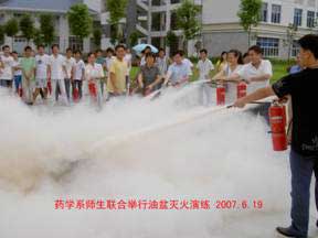 7.公基部、藥學(xué)系在保衛(wèi)處的配合下、各系領(lǐng)導(dǎo)親臨的組織下分別在5月29日和6月19日舉行由全體老師和學(xué)生會(huì)干部、舍長(zhǎng)參加的聯(lián)合滅火演練。