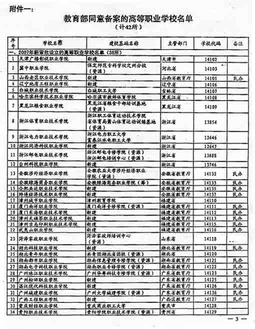 教育部于2007年4月20日下發(fā)《關(guān)于公布備案的高等職業(yè)學(xué)校名單的通知》(教發(fā)函〔2007〕66號),同意將我校予以備案,學(xué)校名稱:福建衛(wèi)生職業(yè)技術(shù)學(xué)院,學(xué)校代碼:12633。 辦公室