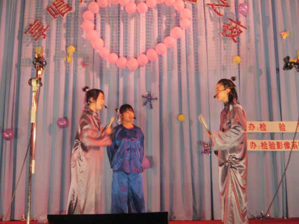 檢驗(yàn)影像系于2007年5月9日晚6:00在院學(xué)術(shù)廳舉辦了“享唱之約綜藝之夜”文藝晚會。晚會以藝術(shù)節(jié)的魅力組合小組唱為主線,穿插了小品、舞蹈、話劇、小提琴獨(dú)奏、歌曲串燒等節(jié)目,使整場晚會節(jié)目精彩紛呈,形式多樣,在晚會中的游戲——最想聽你唱和爭分奪秒節(jié)目中,融入了場外觀眾的互動參與,把整場晚會推向高潮。最后,晚會在閉幕曲《年輕的戰(zhàn)場》中落下了帷幕。