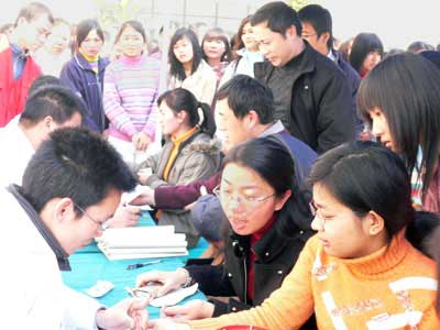 血液庫存緊張,呼吁獻(xiàn)血英雄。由于氣溫降低獻(xiàn)血者減少等多方面因素影響,省血液中心血庫頻頻告急。以履行公民義務(wù)為光榮,本著關(guān)心社會、關(guān)愛他人的精神,院團(tuán)委于1月30日在一號學(xué)生公寓樓前進(jìn)行集體無償獻(xiàn)血活動,此次活動由藥學(xué)系承辦,05藥學(xué)304團(tuán)支部、05助產(chǎn)302團(tuán)支部協(xié)辦。