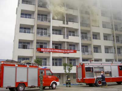 演練于下午三時正式開始,分為火災(zāi)報警、人員緊急疏散逃生和火災(zāi)撲救三個環(huán)節(jié)。演練模擬學(xué)生公寓著火,學(xué)院值班室接到報警后,立即報告院領(lǐng)導(dǎo)并撥打火警“119”;院領(lǐng)導(dǎo)啟動消防預(yù)案,老師引導(dǎo)學(xué)生迅速逃離火災(zāi)現(xiàn)場;閩侯縣公安消防大隊一中隊派出14名消防官兵,2部消防車進行實戰(zhàn)滅火。演練過程指揮有力、行動有序。演練現(xiàn)場人聲鼎沸,氣氛緊張,秩序井然,演習(xí)十分逼真有效,達到了預(yù)期的效果。