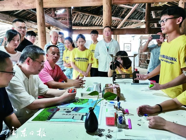 “鄉(xiāng)村有很多自然和人文歷史資源,但普遍缺乏人才智力,這也成為了制約鄉(xiāng)村振興的重要因素,我們要做的不僅是為鄉(xiāng)村提供智力支持,更重要的是幫助村民們開(kāi)發(fā)他們擁有的資源,利用其優(yōu)勢(shì)提高經(jīng)濟(jì)效益,做到可持續(xù)發(fā)展?!标?yáng)光學(xué)院助推屏南鄉(xiāng)村振興活動(dòng)總指導(dǎo)王秉安教授說(shuō)。今年暑假,該學(xué)院共組織33個(gè)不同專業(yè)的100多名師生組成18支“青年紅色筑夢(mèng)之旅”實(shí)踐小分隊(duì),入駐北墘村、富竹村、白玉村,并根據(jù)當(dāng)?shù)剜l(xiāng)村振興實(shí)際,策劃生成啟動(dòng)了富竹村民宿項(xiàng)目設(shè)計(jì)、北墘村手作扎染培訓(xùn)及鄉(xiāng)村媒介素養(yǎng)培訓(xùn)等18個(gè)項(xiàng)目,在提升鄉(xiāng)村文化內(nèi)涵、擴(kuò)大鄉(xiāng)村知名度和影響力的同時(shí),助推當(dāng)?shù)匚幕糜蔚犬a(chǎn)業(yè)發(fā)展,為鄉(xiāng)村振興提供智力支持。
